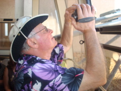 Salim takes picture of Ann, Father Samer, and Bill, at Masada (rw)