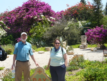 Ann and Robert with wonderful flowering trees in Latroun (rw)