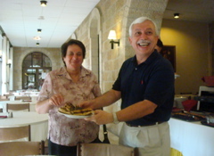 oum Fadi and Bill for breakfast at Notre Dame Jerusalem Center (sy)